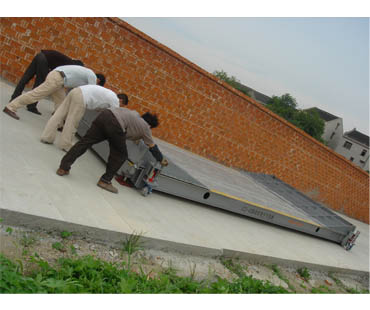 需平整的水泥地面,一般混凝土地面厚度不小于200mm 特別適合糧庫、果場(chǎng)等季節(jié)性使用的場(chǎng)合 使用中應(yīng)注意秤體與引坡、滾輪的相對(duì)位置,保證他們不發(fā)生碰觸